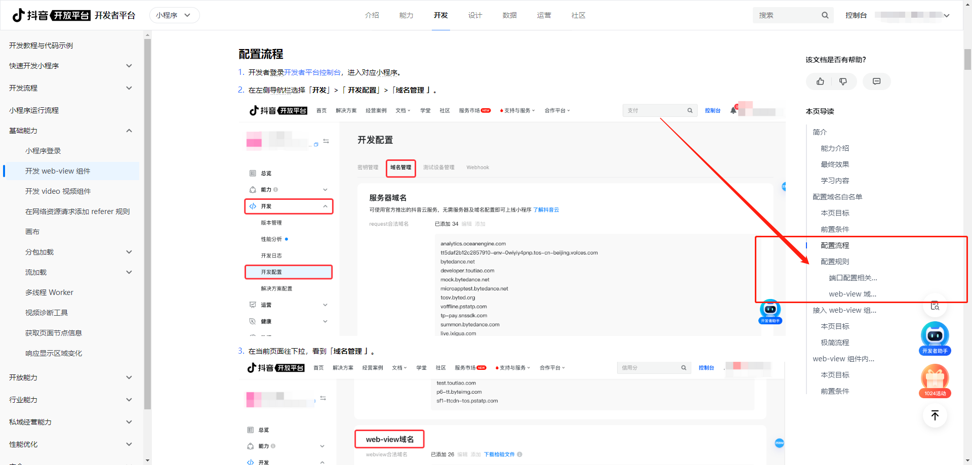 需要配置业务域名,根据抖音官方教程【配置白名单】提示进行配置即可