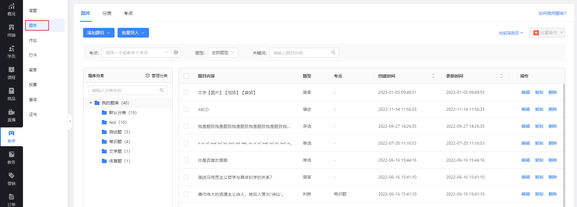 本文介绍教育管理后台【题库】相关内容。