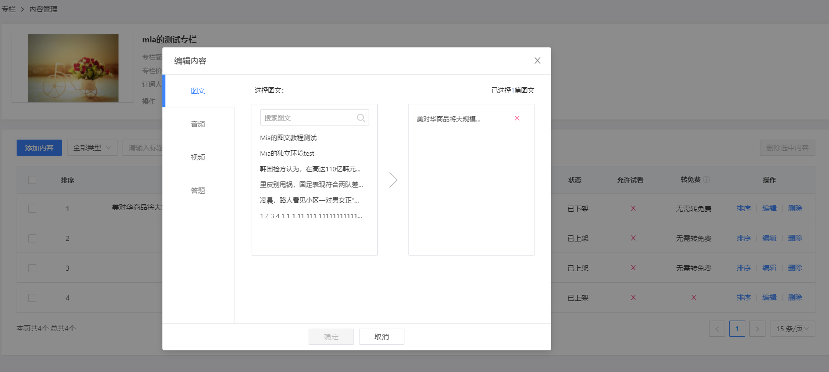 支持“试看”和“转免费”设置