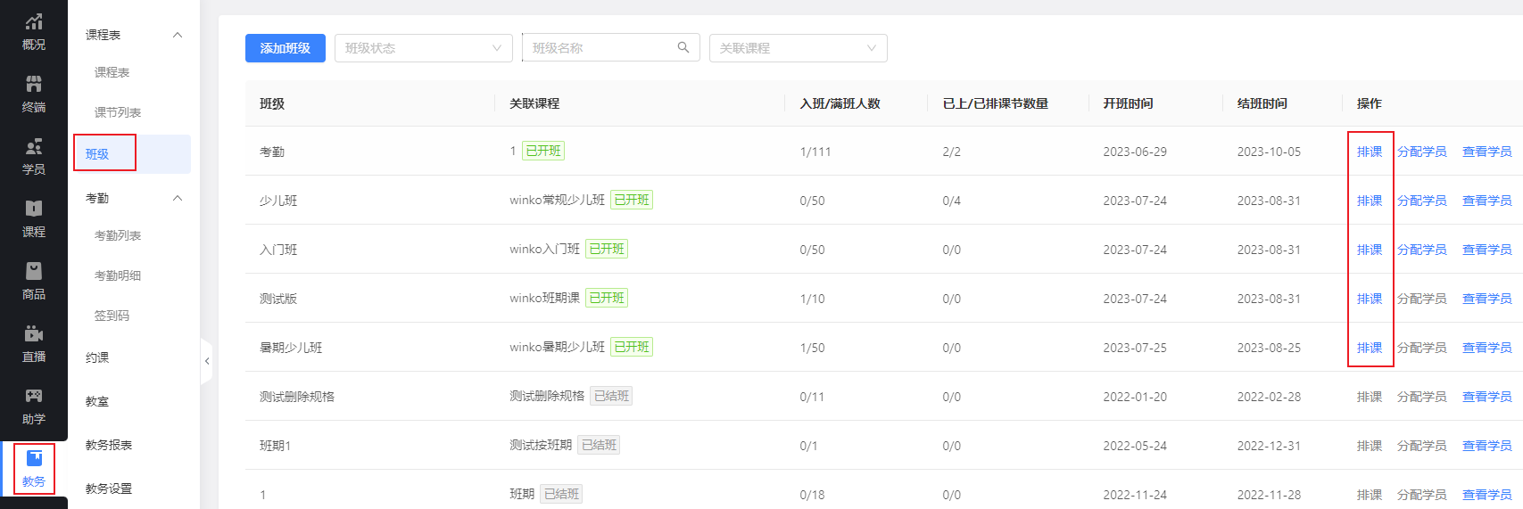 所以排课设置的上课日期需要在班级的开始和结束时间范围内。