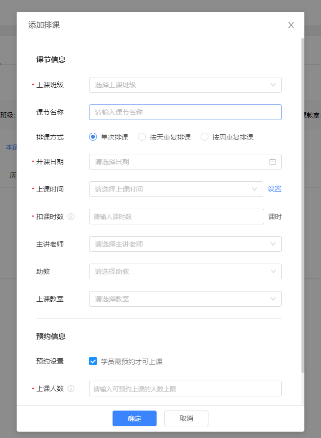 ② 如勾选“需要预约”,需要填写每堂课预约上课的人数上限。