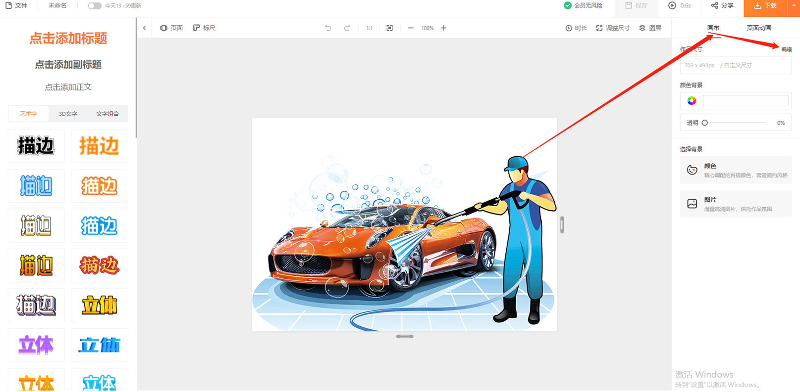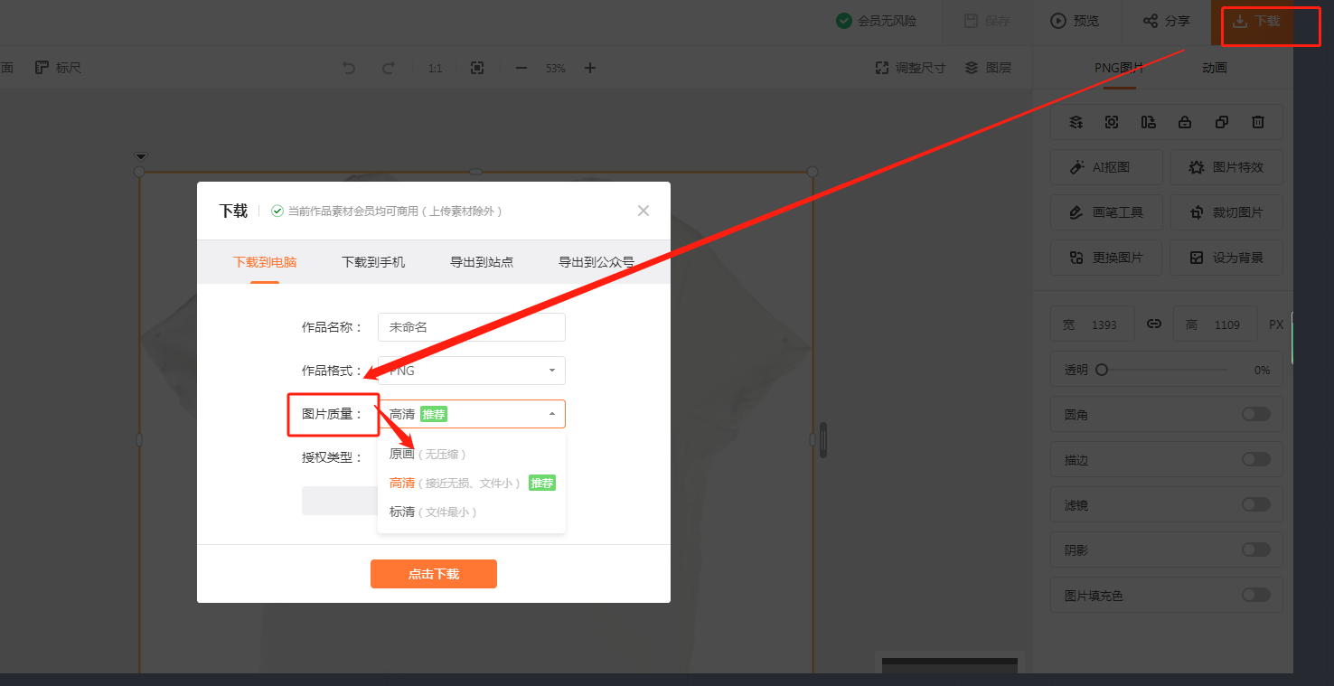 A:在编辑器里调整为更大的尺寸,然后再下载原图画质