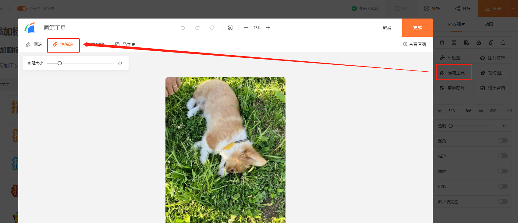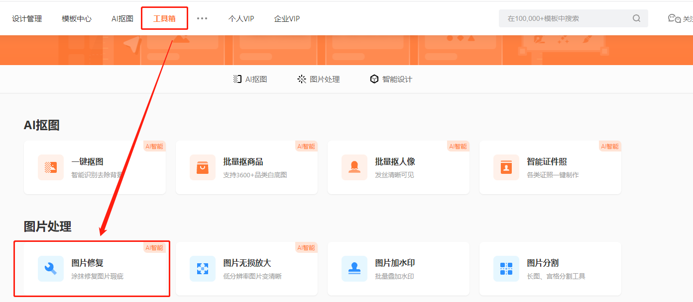 A:不能,快图目前没有去水印功能,但如果水印不大,可以使用【图片修复工具】或者画笔涂抹工具进行覆盖