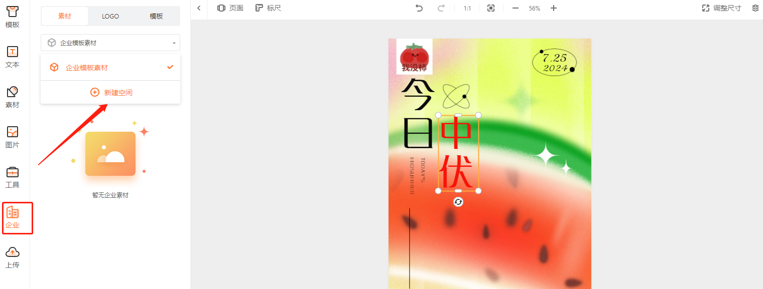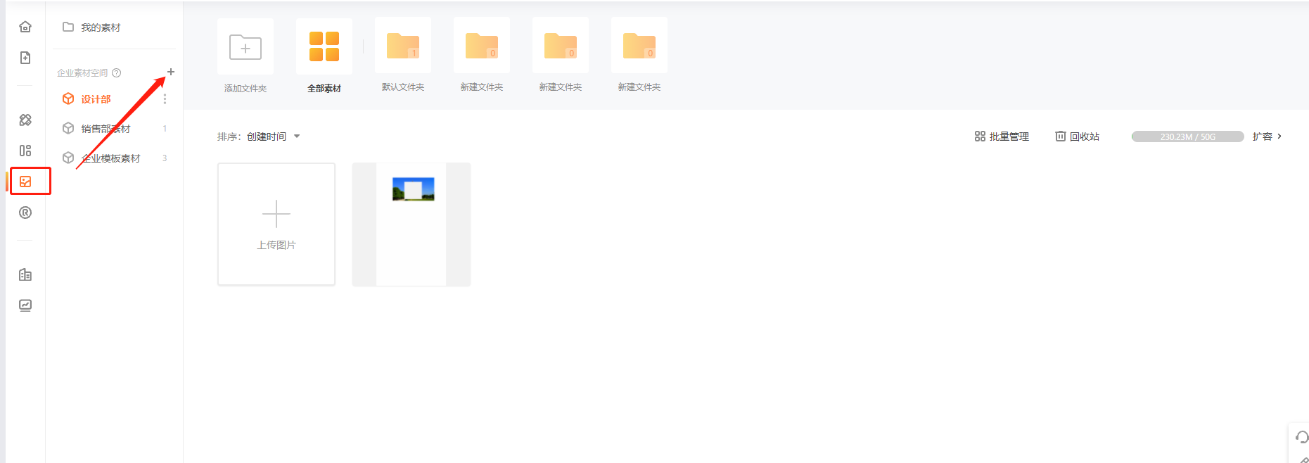 1.1 进入 设计管理页面-我的素材-企业素材空间添加