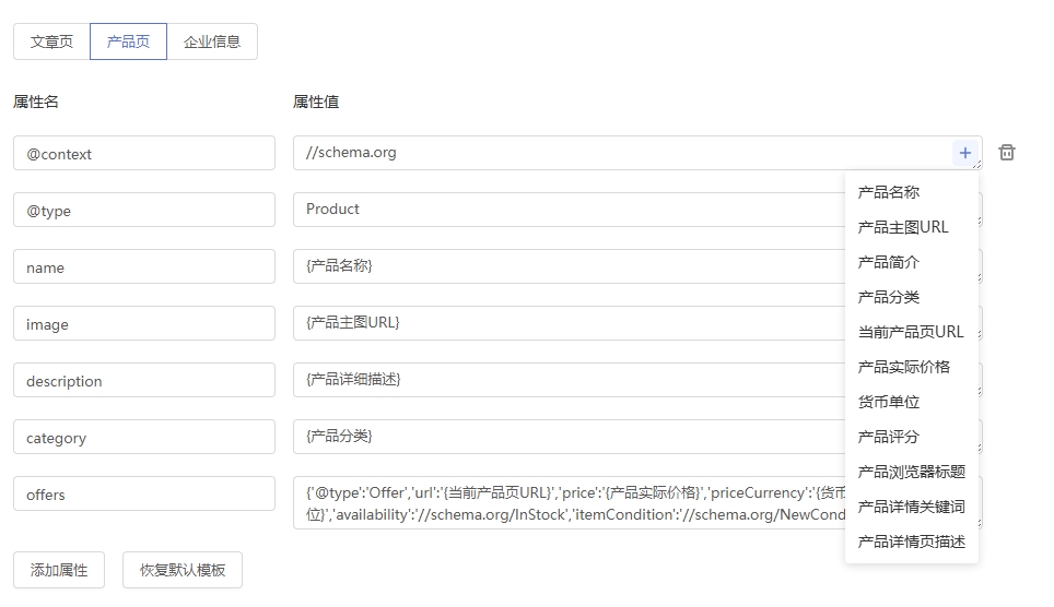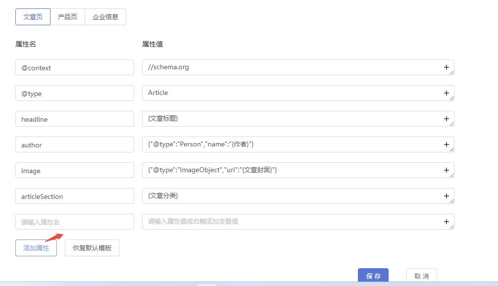 添加属性 — 点击「添加属性」按钮,输入属性名并设置属性值