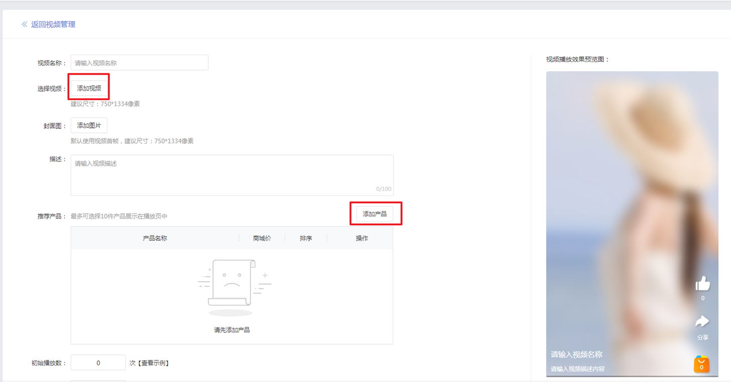 开启功能后,点击“新增视频”按钮,进入编辑视频页面。