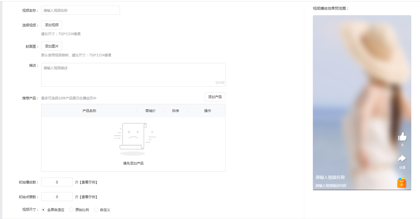 - 初始播放数、初始点赞数:支持设置初始值,将与真实值叠加后向客户展示。