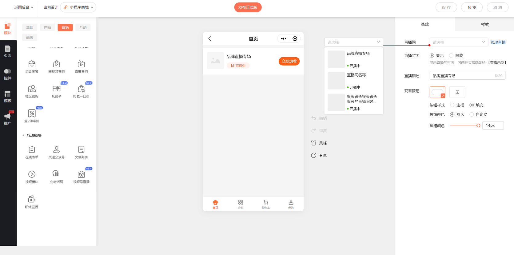 4. 小程序商城内设置直播间入口