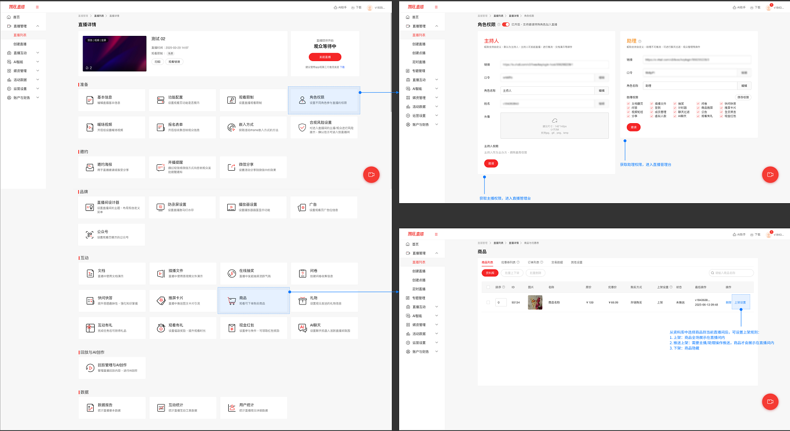 需要注意:如需要手动控制推送直播间商品,请前往电脑APP或电脑网页端操作