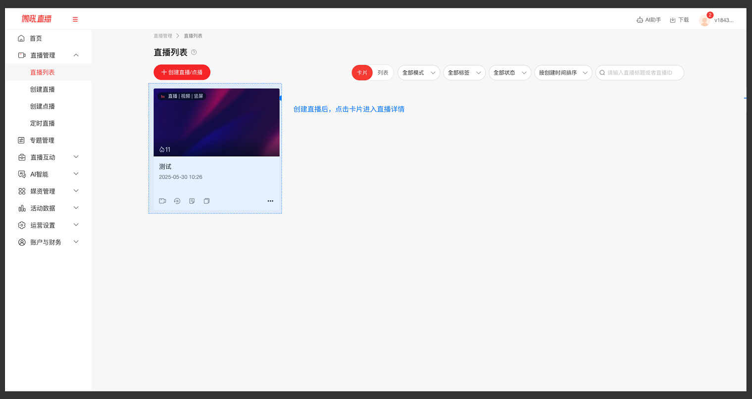 3.   创建/管理直播间