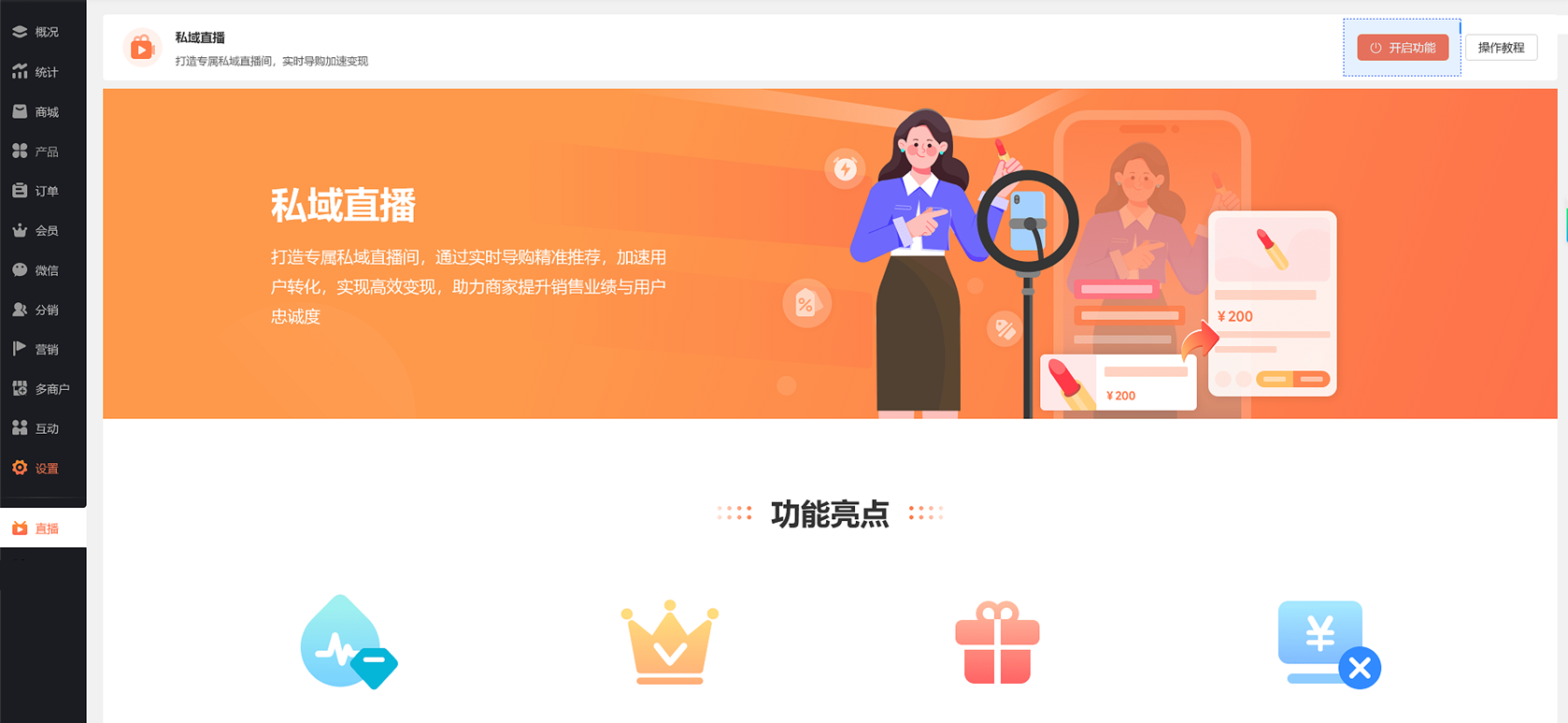 支持商家打造专属私域直播间通过实时导购精准推荐加速用户转化实现高效变现助力商家提升销售业绩用户忠诚度。