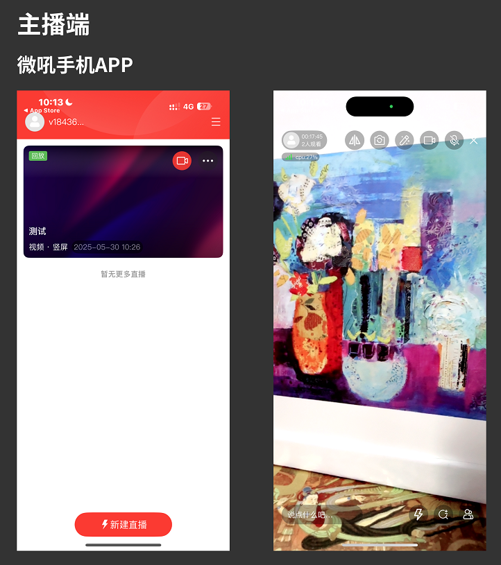创建直播后,可通过微吼网页端/手机APP/电脑客户端进行开播