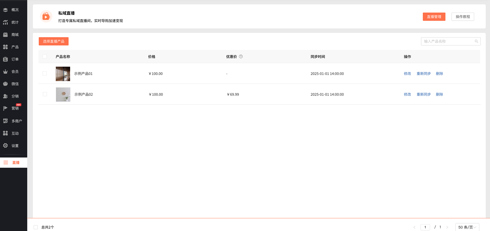 支持快捷同步商城产品至微吼直播产品列表: