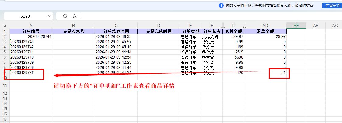 如果订单管理导出的是 2026-01-14 到 2026-01-29 的数据