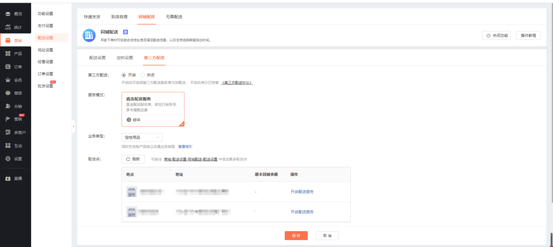 目前配送范围支持根据服务半径设置,若服务半径为10公里,则买家的收货地址超过商家取货地址10公里的范围将不可下单