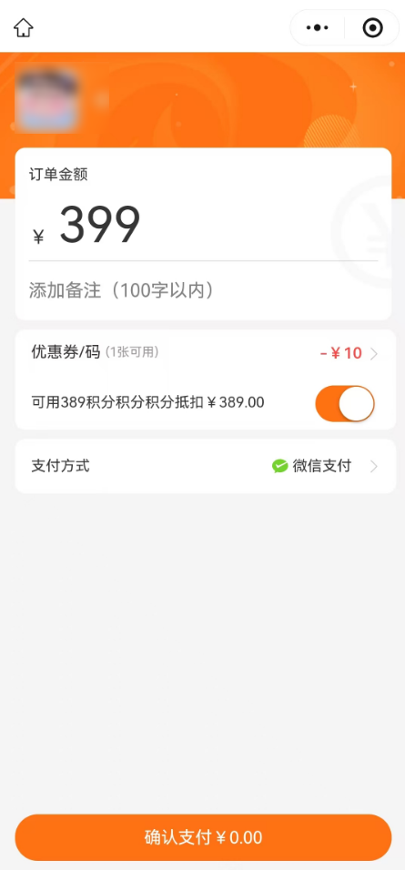 注:设置积分,优惠券可叠加使用,进入付款页面,并登录会员后,未输入金额不会显示积分,优惠券抵扣入口。
