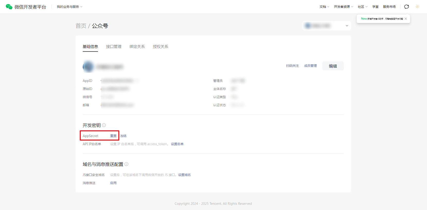 二、重置AppSecret