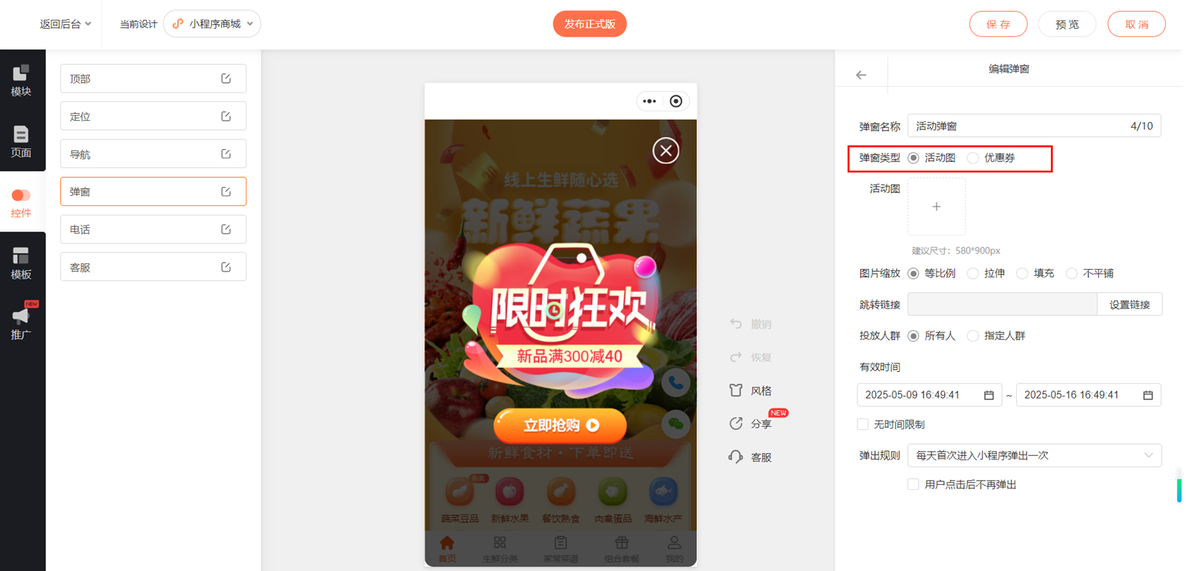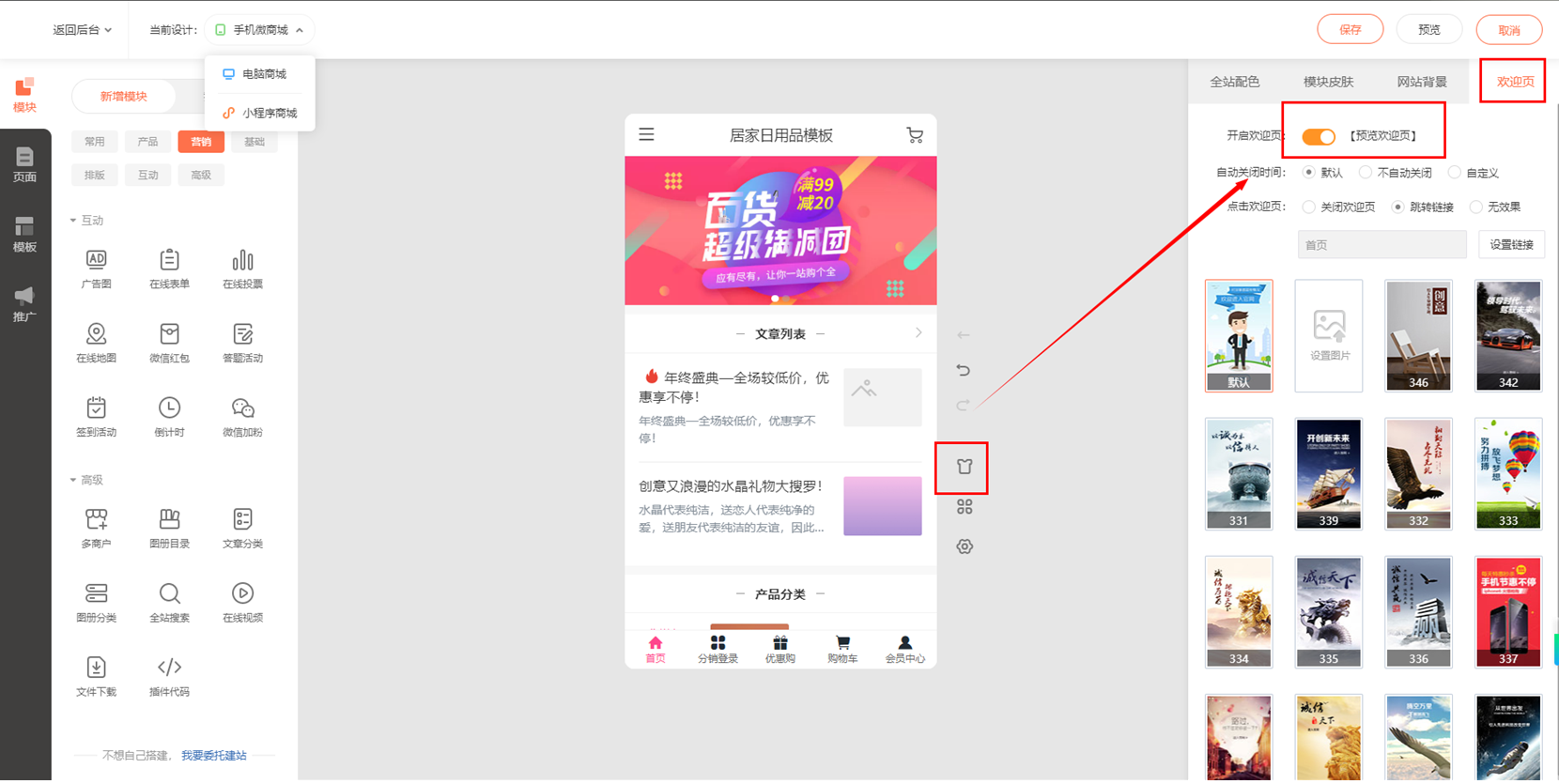 如何设置商城首页自动弹出海报?