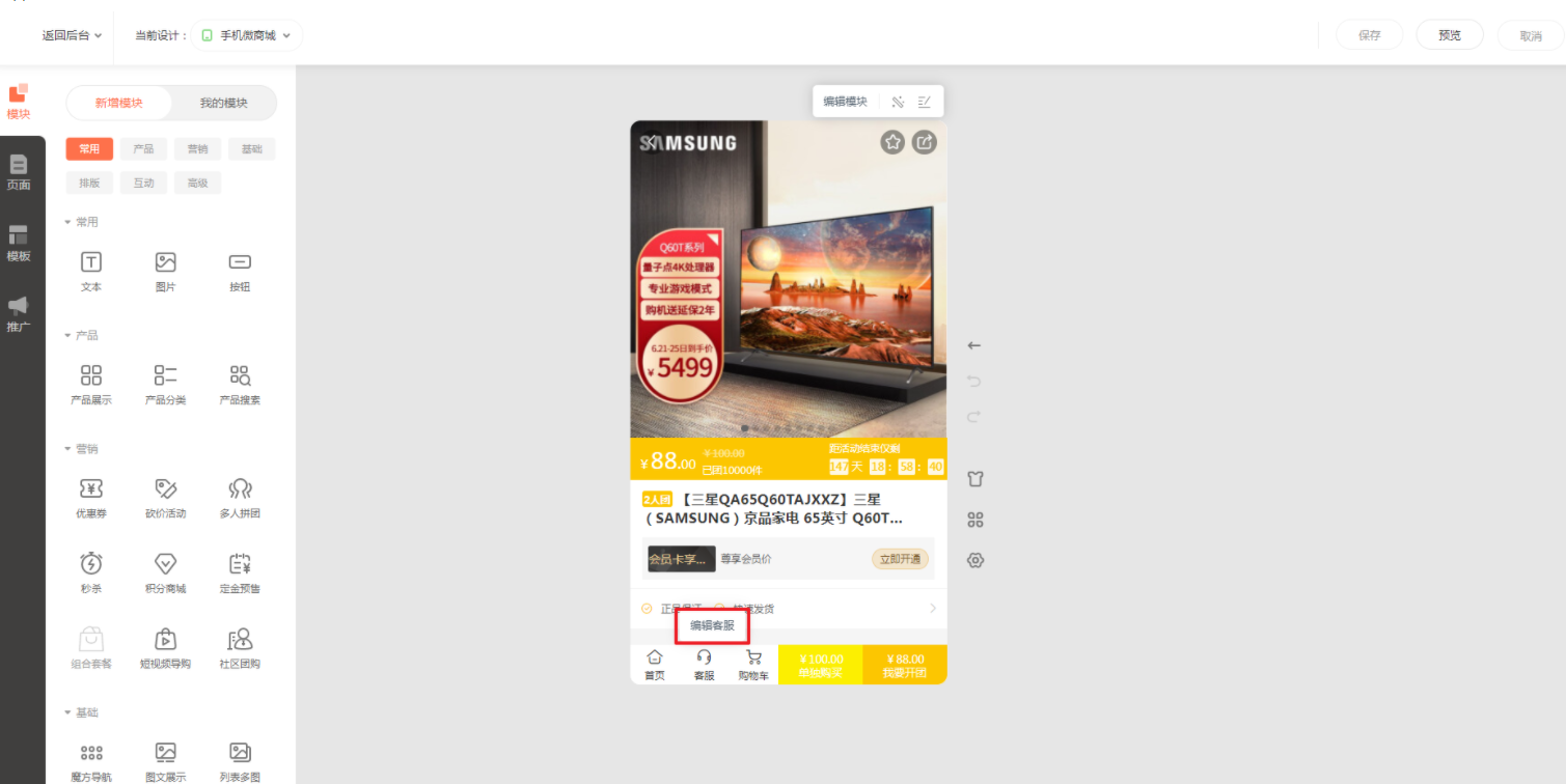 2.手机版:请在手机微商城产品详情页设置客服。