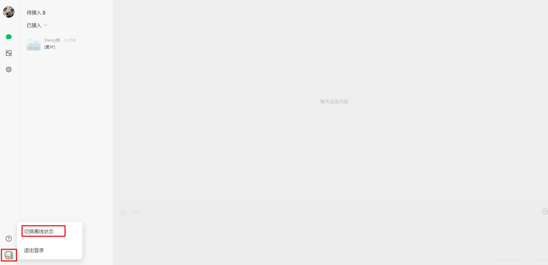 点击在线状态,可以选择在线状态、离开状态: 选择在线状态后,即使退出客服小程序,仍可在“服务通知”中接收到商城客户咨询的消息提醒; 选择离开状态后,将无法收到消息与消息提醒。