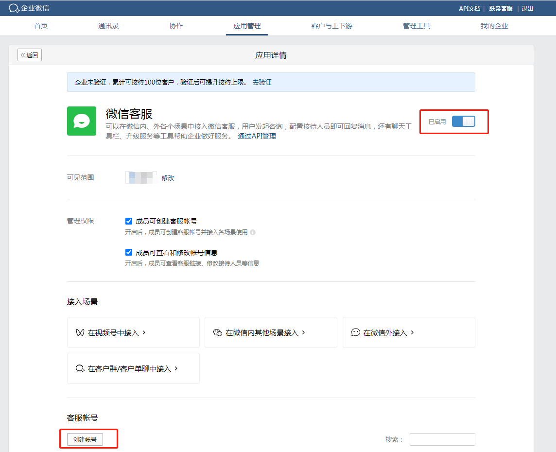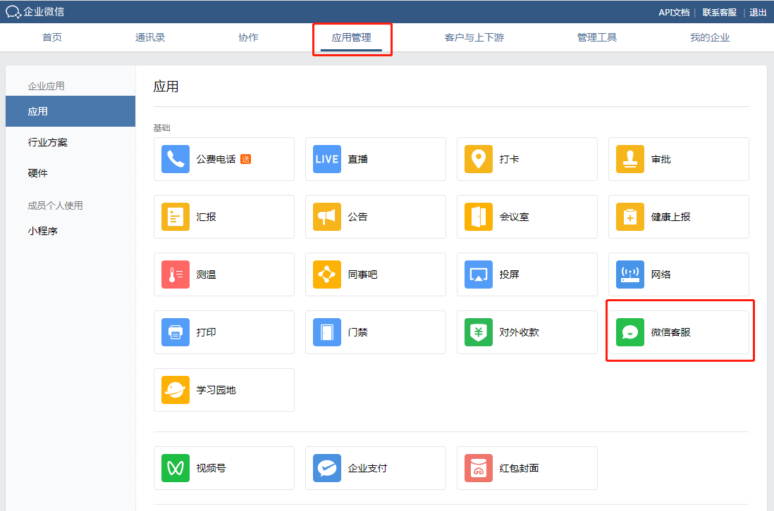登录企业微信管理后台(https://work.weixin.qq.com),前往应用管理,开启并管理微信客服,配置微信客服接待人员。