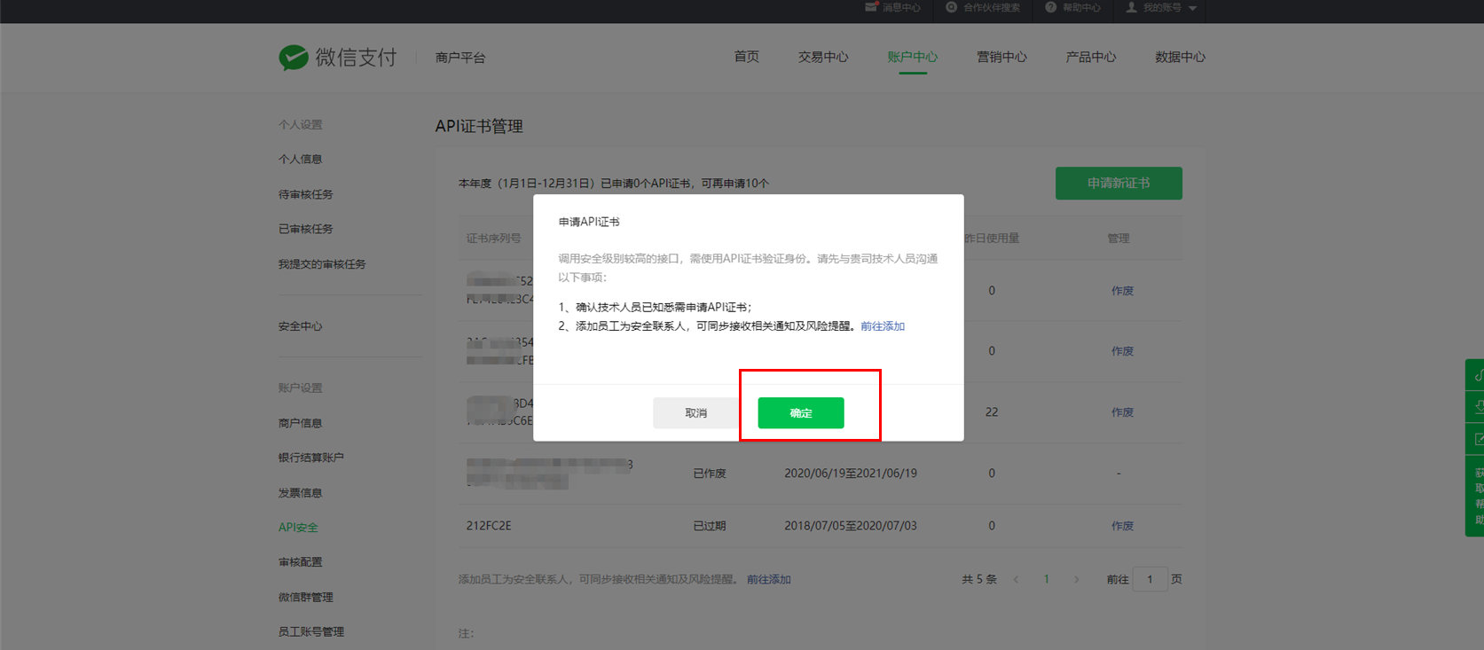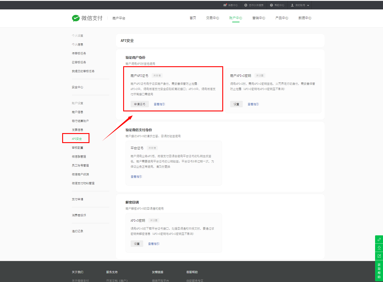 2. 获取权威CA颁发的商户API证书
