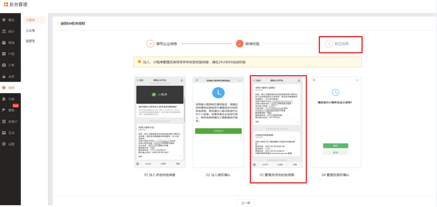 试用小程序转正失败提示【法人扫脸后,法定代表人身份证号码,工商数据未更新】?