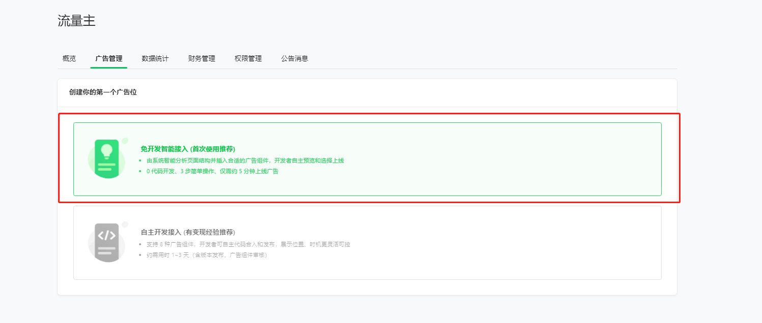 【免开发智能接入】-流程简单,接入速度快,由微信智能分配广告位显示位置